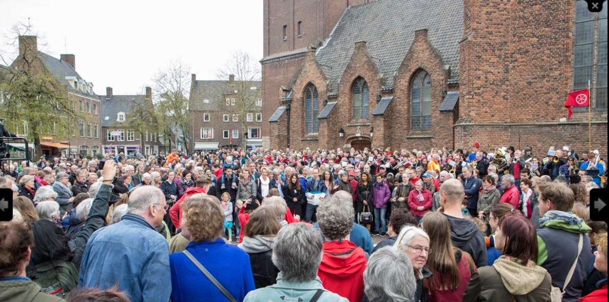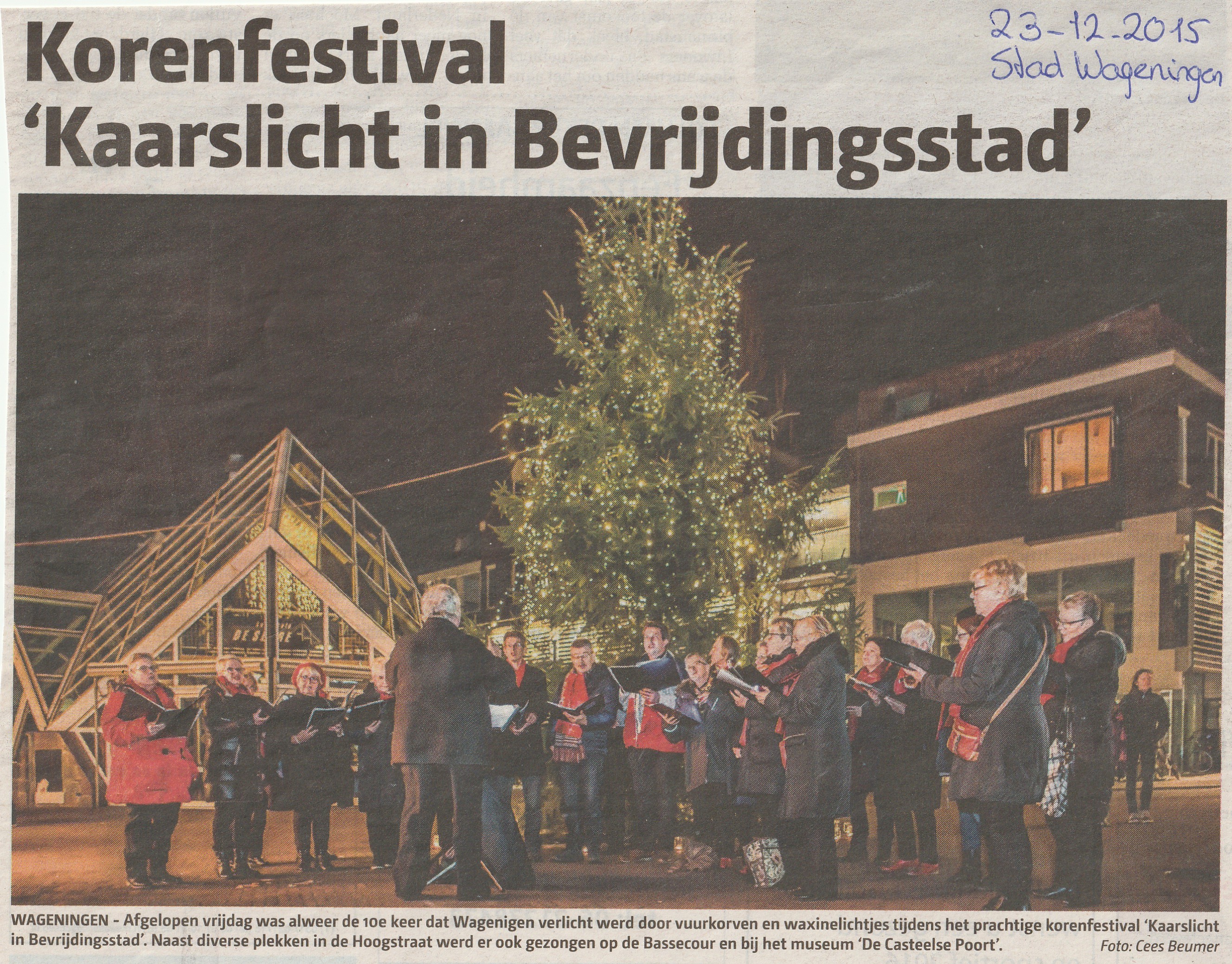 d. Opgewarmd met chocomel en later glühwein zongen circa 12 koren verspreid in de stad, op vrijdagavond, met om 21 uur samenzang op de markt met begeleiding door De Harmonie. Eén keer zongen we op de markt terwijl het sneeuwde! De scouts zorgden voor kaarsjes en vuurkorven. De laatste kerstlichtjesavond in deze vorm was in december 20xx.